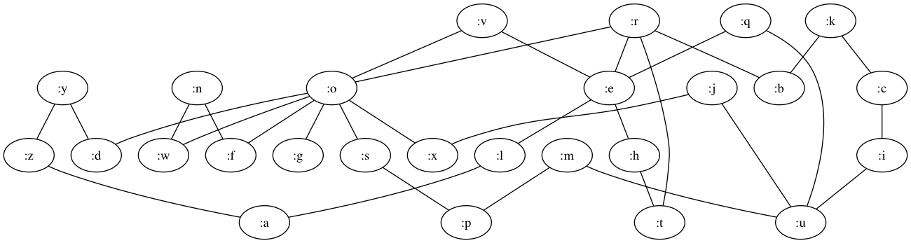 Step 1 - The program starts with our graph in the initial state of our beloved thequickbrownfoxjumpsoverthelazydog configuration.